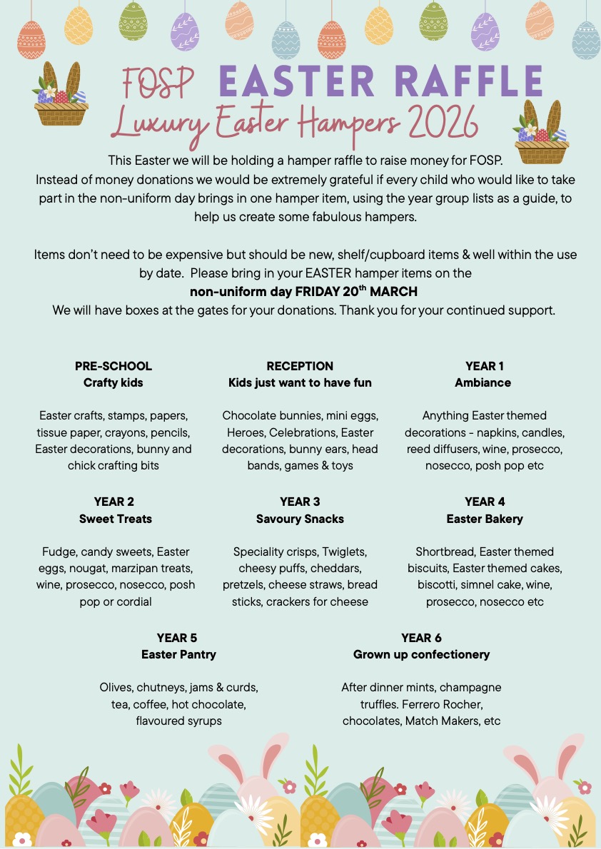The FOSP Easter raffle is a simple fundraising event that helps raise valuable money for the school.