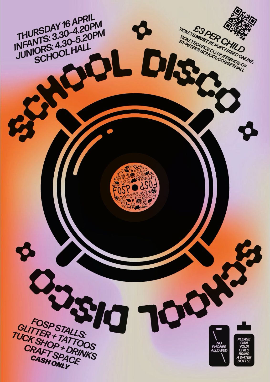 It costs just £3 and you can pay for entrance via Ticketsource ahead of the disco, or if you forget, on the day with the £3 taped to a card or envelope with your child’s name on, to help with admissions and avoid any tears from coins falling out of pockets! Please do try to use Ticketsource as this speeds up entry and also helps volunteers with the sign-in process.