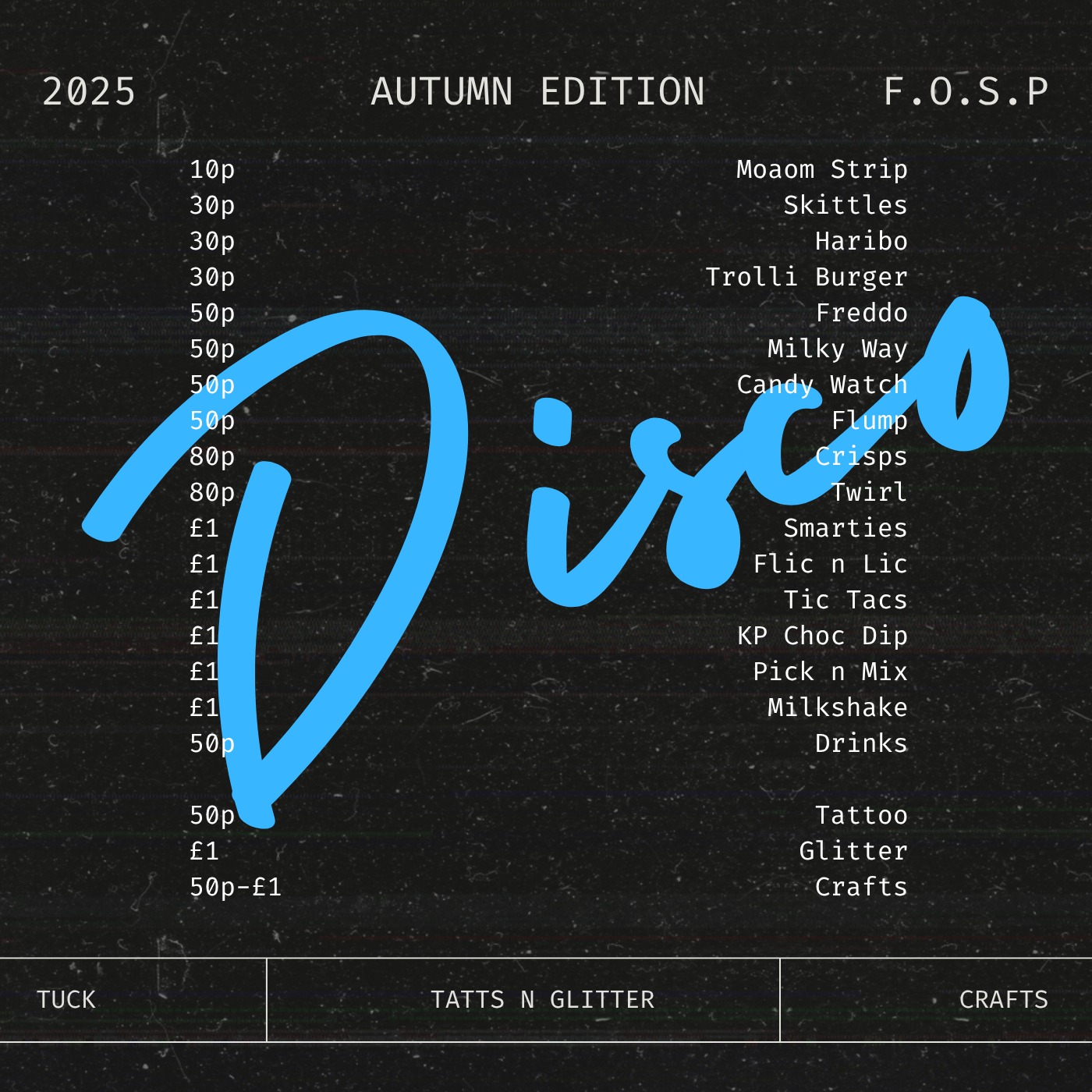 Here is the price list – please do share this with your children beforehand to help them plan what they may like to spend their money on.